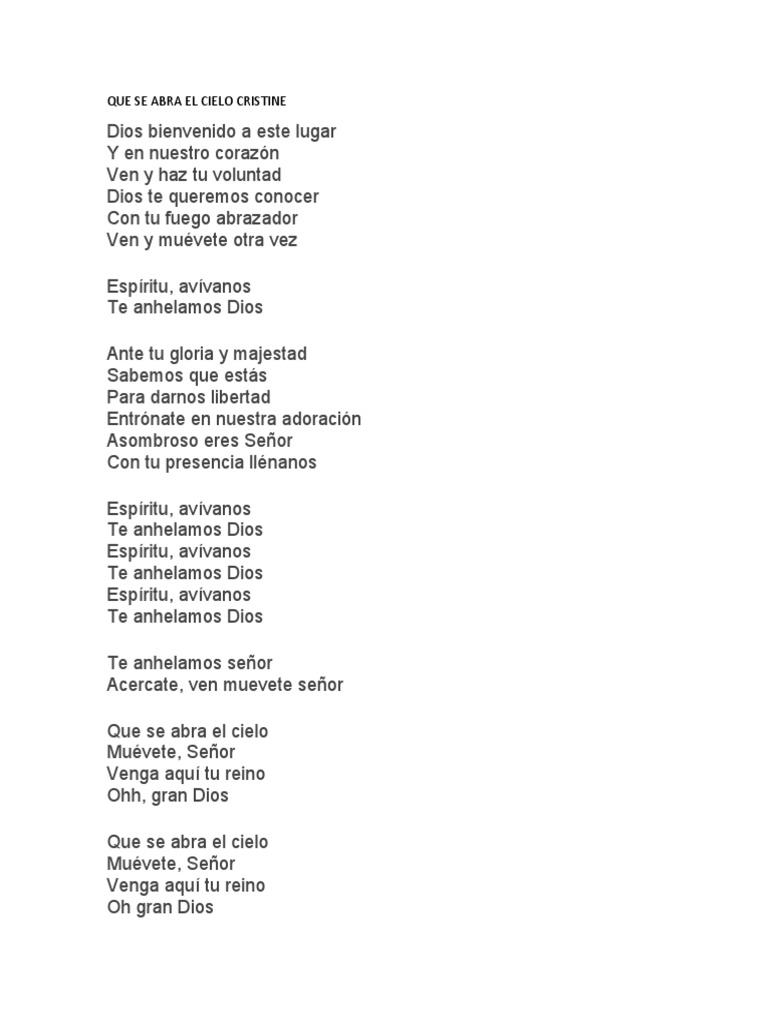 Que Se Abra El Cielo Cancion Cristiana Pdf