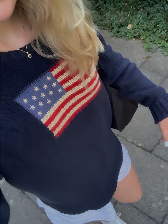 American Flag Knit Sweater Etsy